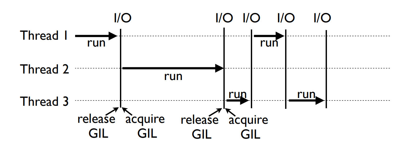 多线程 threading 机制依然是有用的,用于 IO 密集型计算,因为在 IO 期间,线程会释放 GIL,实现 CPU 和 IO 的并行,因此,多线程用于 IO 的密集型计算依然可以大幅度提高速度,但是多线程执行 CPU 密集型计算,只会更加拖慢速度;